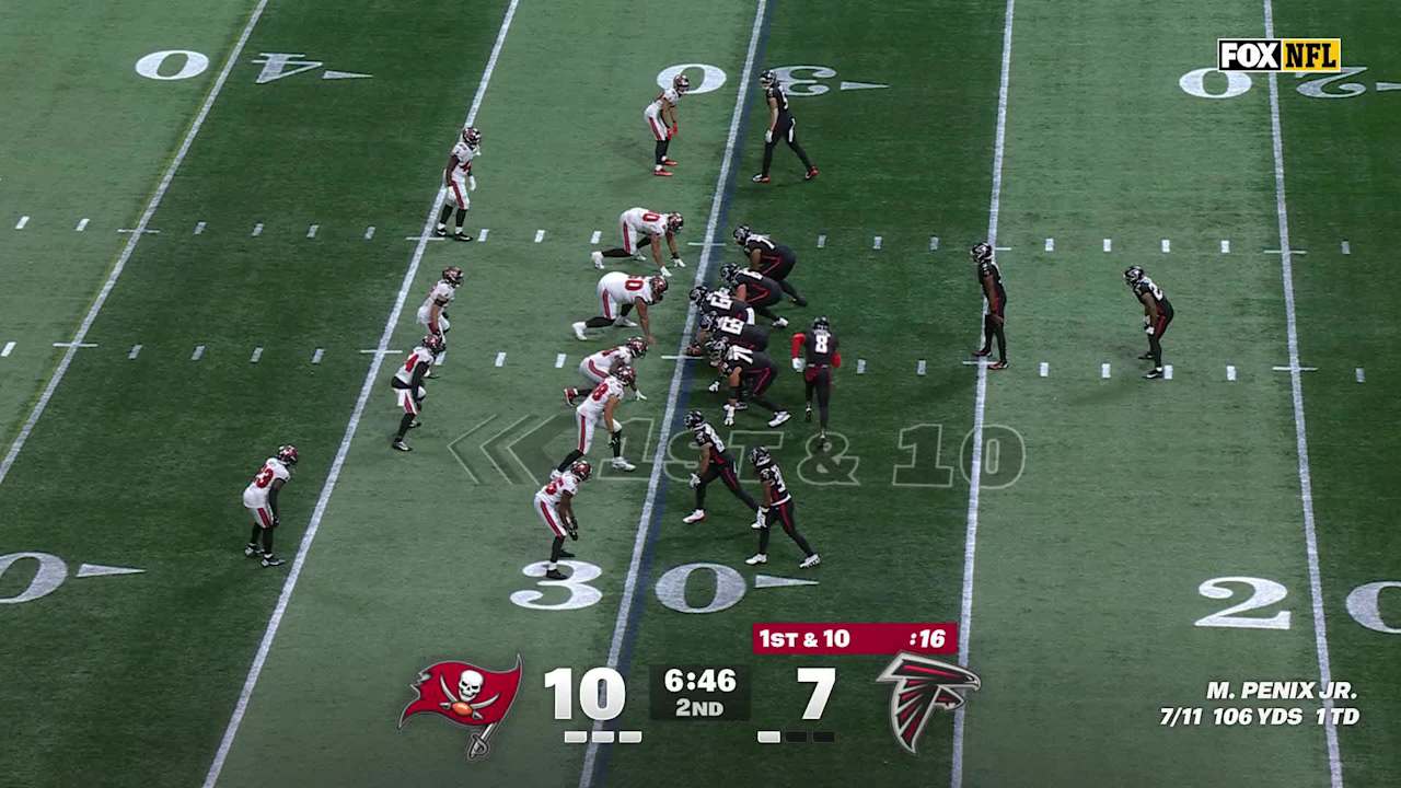 Atlanta Falcons tight end Kyle Pitts makes a 12-yard catch from quarterback Michael Penix Jr. for a first down.