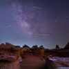 Photographer Osama Fathi captured a spectacular view of Perseid meteors crossing the Milky Way above the ruins of an ancient settlement in Egypt.